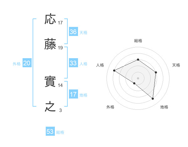 応藤 實之さんの総格は53画の3点!