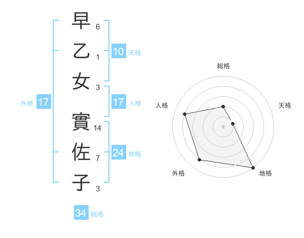 早乙女 實佐子さんの総格は34画の2点