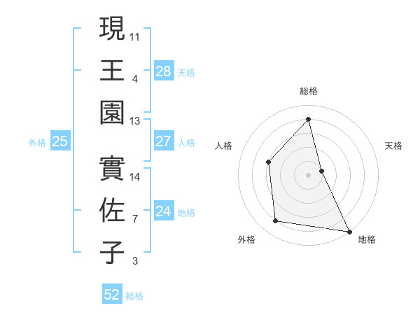 現王園 實佐子さんを姓名の画数から五運を鑑定