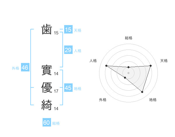 歯 實優綺さんを姓名の画数から五運を鑑定