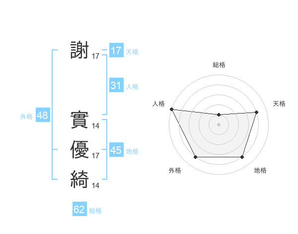 謝 實優綺さんの天格は17画の4点!