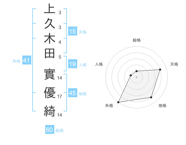 上久木田 實優綺さんを姓名の画数から五運を鑑定