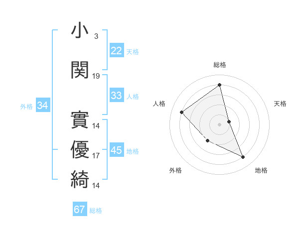 小関 實優綺さんを姓名の画数から五運を鑑定