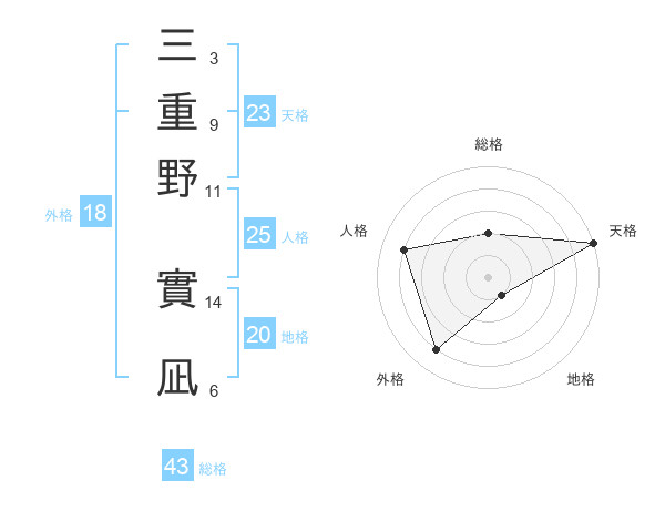 三重野 實凪さんを姓名の画数から五運を鑑定