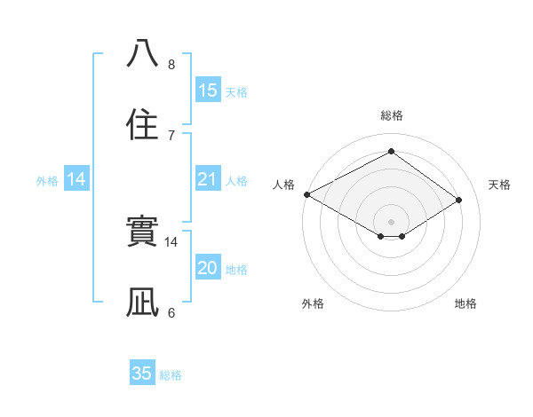 八住 實凪さんの地格は20画の1点!
