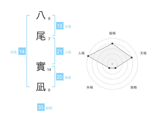 八尾 實凪さんを姓名の画数から五運を鑑定