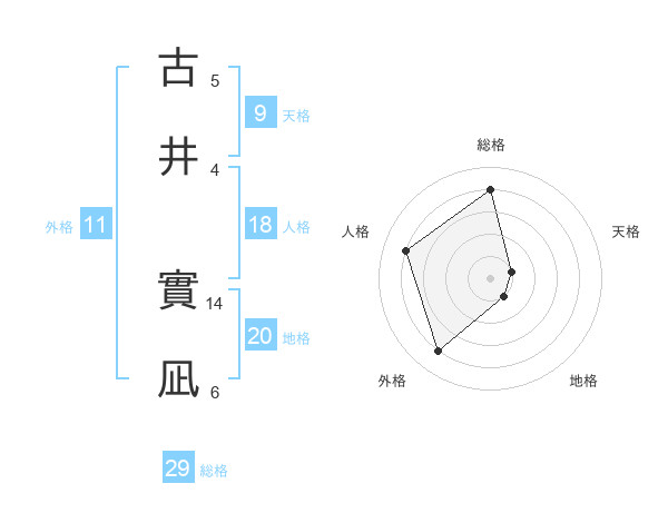 古井 實凪さんの総格は29画の4点!
