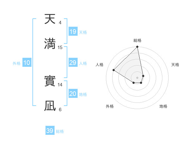 天満 實凪さんの総格は39画の5点!