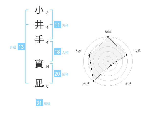 小井手 實凪さんを姓名の画数から五運を鑑定
