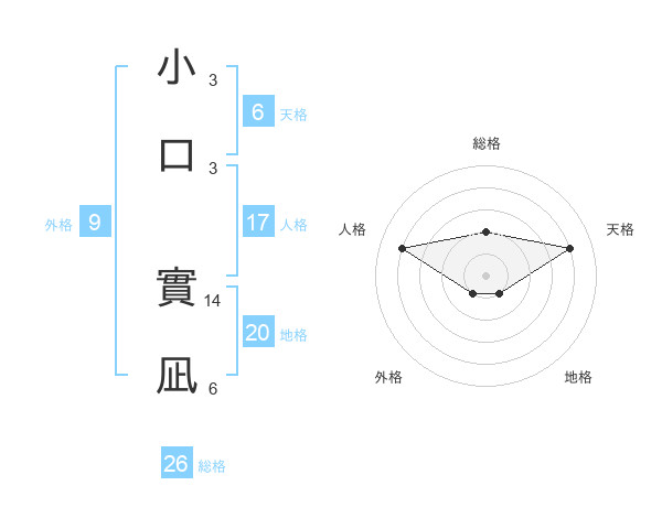 小口 實凪さんの地格は20画の1点!