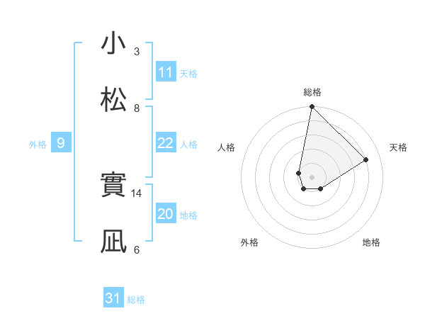 小松 實凪さんの地格は20画の1点!