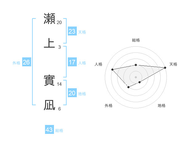 瀬上 實凪さんの地格は20画の1点!