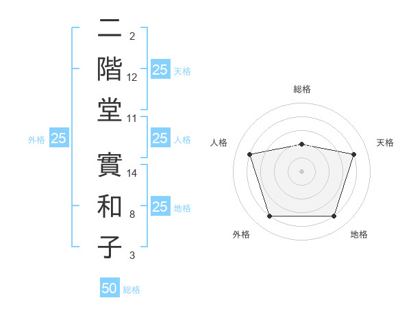 二階堂 實和子さんの地格は25画の4点!