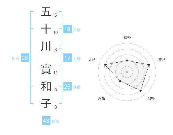五十川 實和子さんを姓名の画数から五運を鑑定