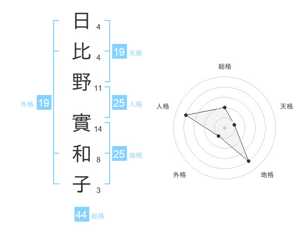 日比野 實和子さんの総格は44画の2点!
