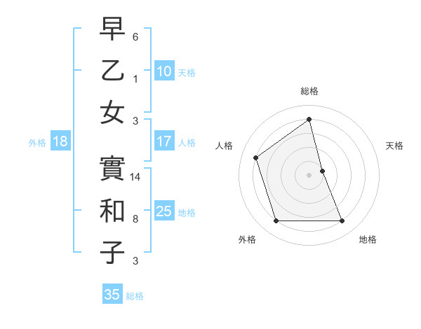 早乙女 實和子さんを姓名の画数から五運を鑑定