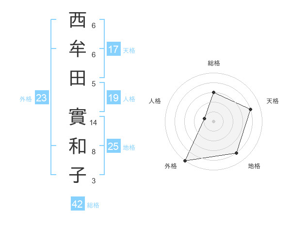 西牟田 實和子さんを姓名の画数から五運を鑑定