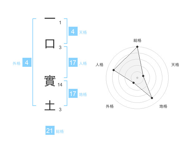 一口 實土さんの地格は17画の4点!