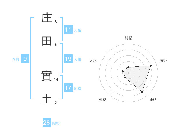 庄田 實土さんの総格は28画の1点!