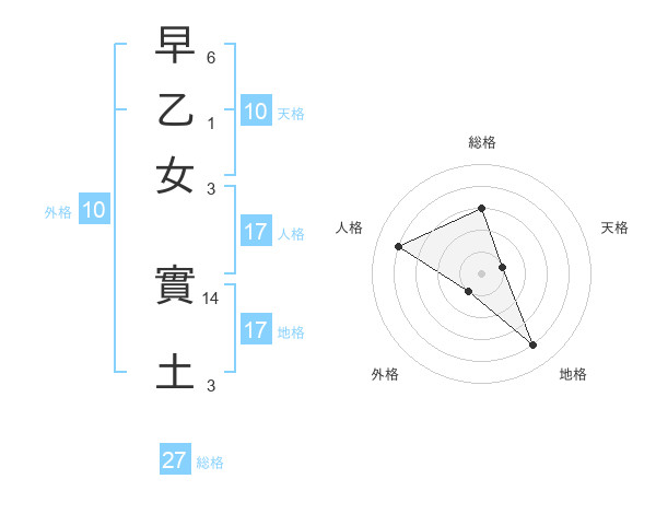 早乙女 實土さんを姓名の画数から五運を鑑定