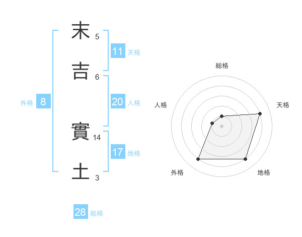 家系が持つ宿命的な運勢を表します。祖先から受け継いだ苗字ですので自分の力が及びません。家柄を象徴します。