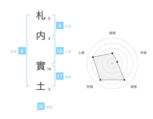 札内 實土さんの総格は26画の2点!