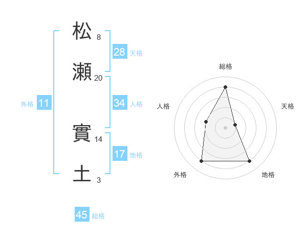 松瀬 實土さんの総格は45画の4点!