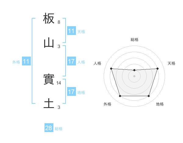 板山 實土さんの総格は28画の1点!