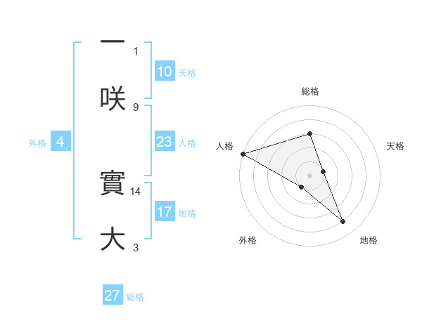 一咲 實大さんの総格は27画の3点!