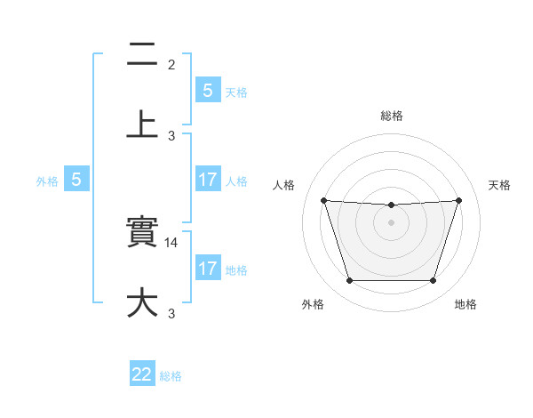 二上 實大さんの天格は5画の4点!