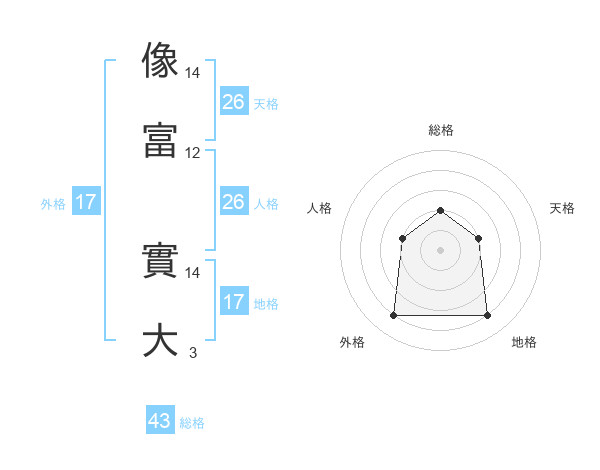 像富 實大さんの外格は17画の4点!