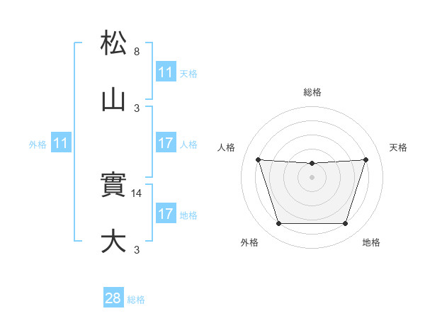 松山 實大さんの天格は11画の4点!