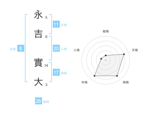 永吉 實大さんの総格は28画の1点!
