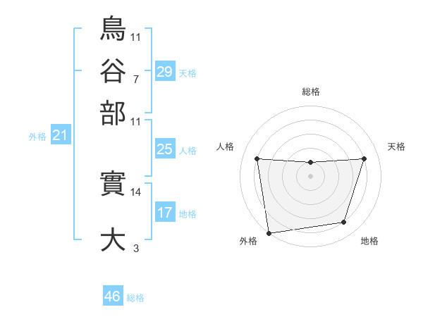 鳥谷部 實大さんを姓名の画数から五運を鑑定