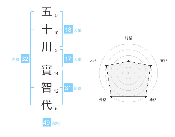五十川 實智代さんの地格は31画の5点!