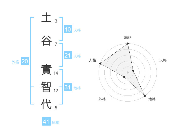 土谷 實智代さんを姓名の画数から五運を鑑定