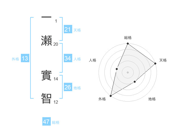 一瀬 實智さんの総格は47画の5点!