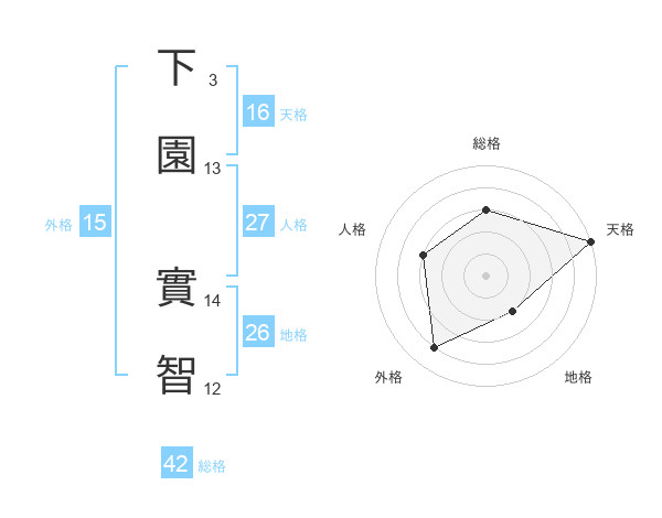 下園 實智さんの総格は42画の3点!