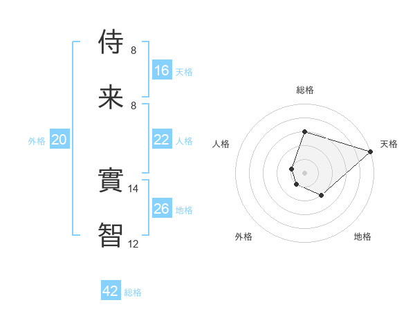 侍来 實智さんの総格は42画の3点!