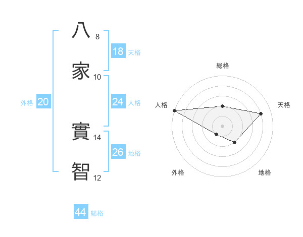八家 實智さんの総格は44画の2点!