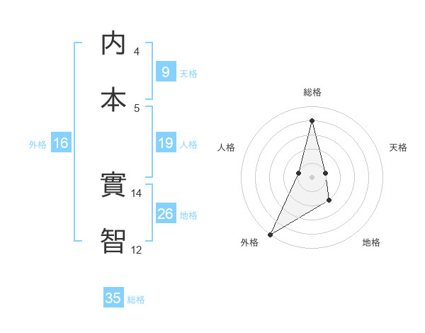 内本 實智さんの外格は16画の5点!