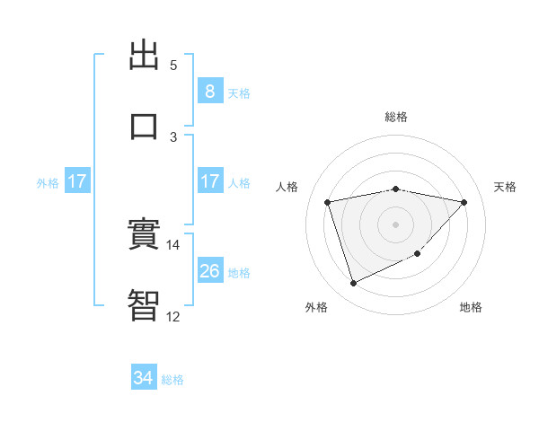 出口 實智さんの外格は17画の4点!