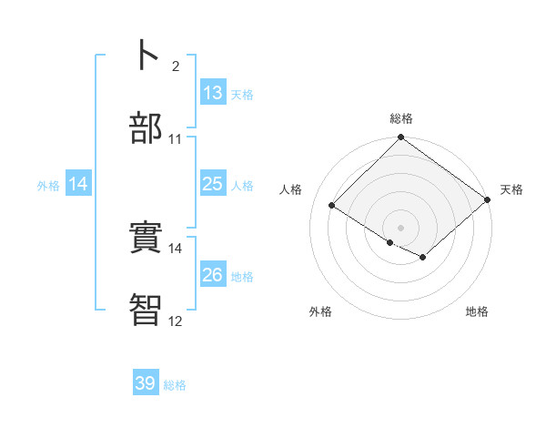 卜部 實智さんの総格は39画の5点!