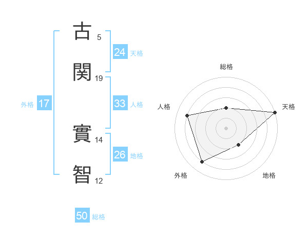 古関 實智さんの天格は24画の5点!