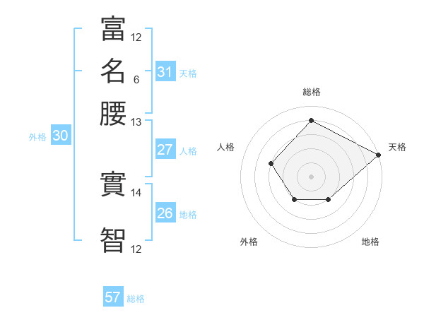 富名腰 實智さんの総格は57画の4点!