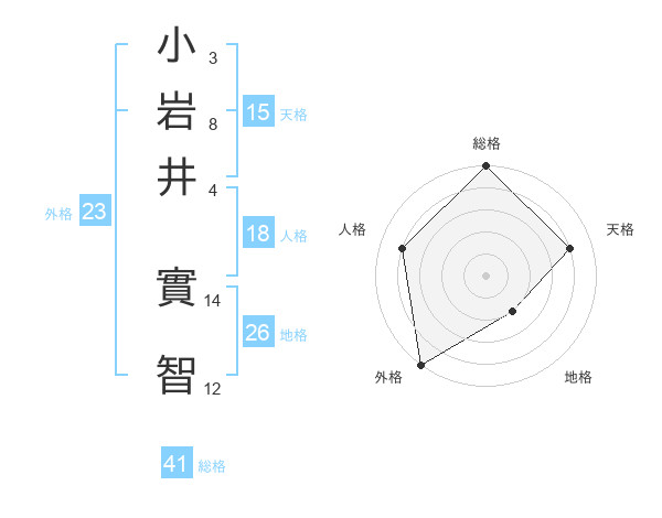 小岩井 實智さんの外格は23画の5点!