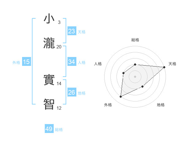 小瀧 實智さんを姓名の画数から五運を鑑定
