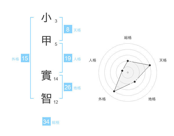 小甲 實智さんの天格は8画の4点!