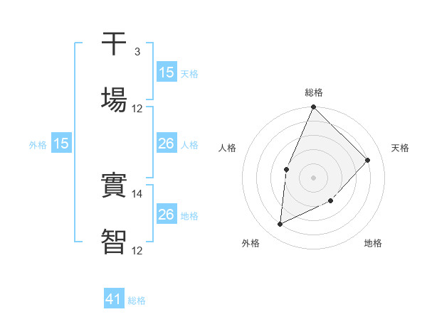 干場 實智さんの天格は15画の4点!