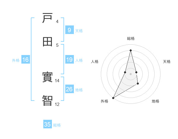 戸田 實智さんの総格は35画の4点!